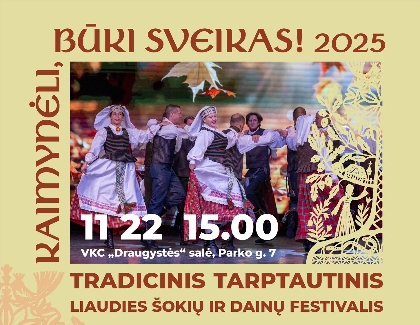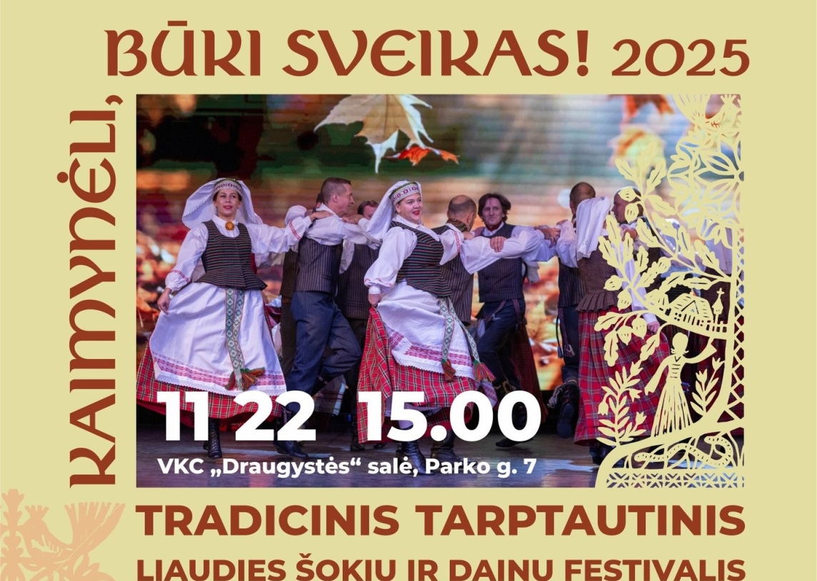 Lapkričio 22 d. 15.00, VKC „Draugystė“ (Parko g. 7) vyks tradicinis liaudies šokių festivalis, kuris jau daugelį metų suburia skirtingų tautų kolektyvus, puoselėjančius liaudies šokio tradicijas ir kultūros paveldą.